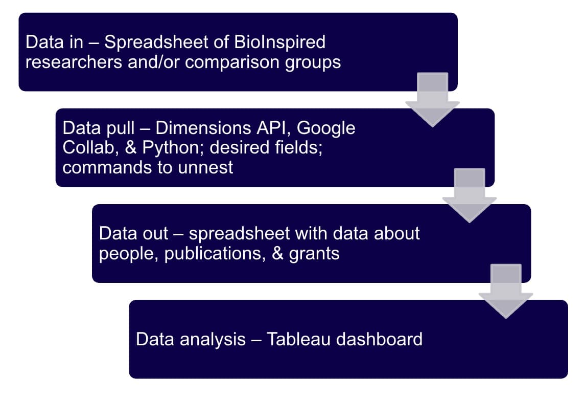 “We mapped BioInspired faculty to Dimensions researcher IDs, which allowed us to query the database and unnest detailed data for deeper analysis.”