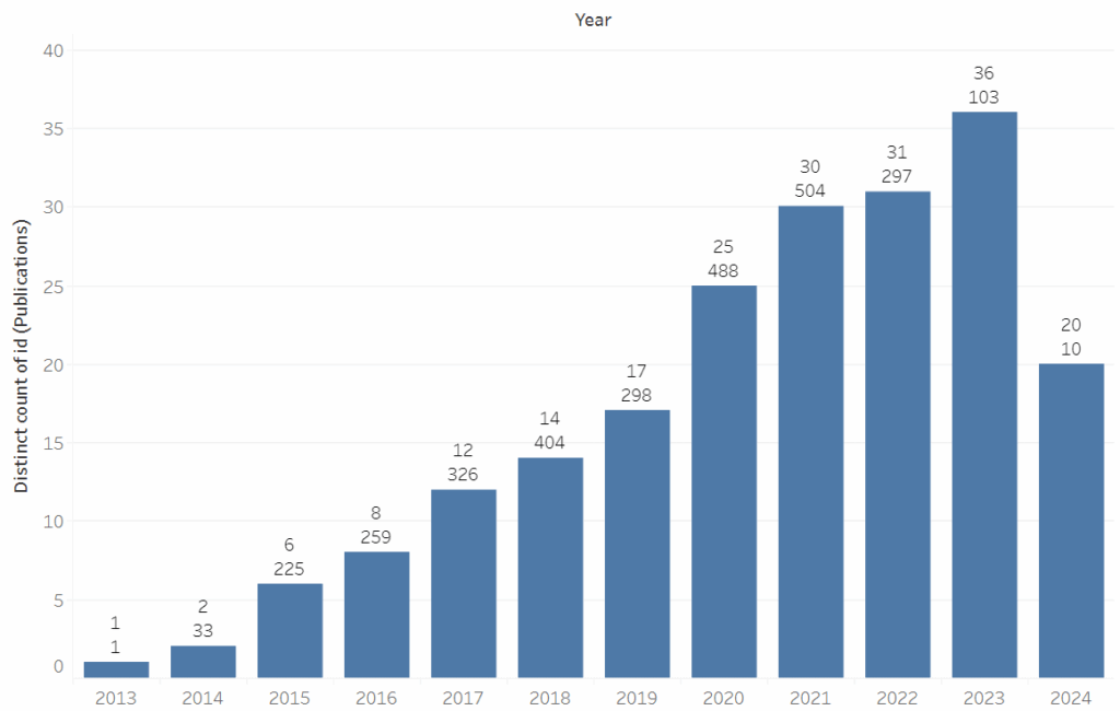 The breakthrough came via a collaboration with Dimensions and the expertise of Emily Koechel, one of the platform’s technical consultants. “We worked very closely with her and it’s been a really fun and fantastic project,” enthuses Emily. Her team, including a graduate student skilled in Python and data visualization, leveraged Dimensions’ API to extract and analyze publication data.